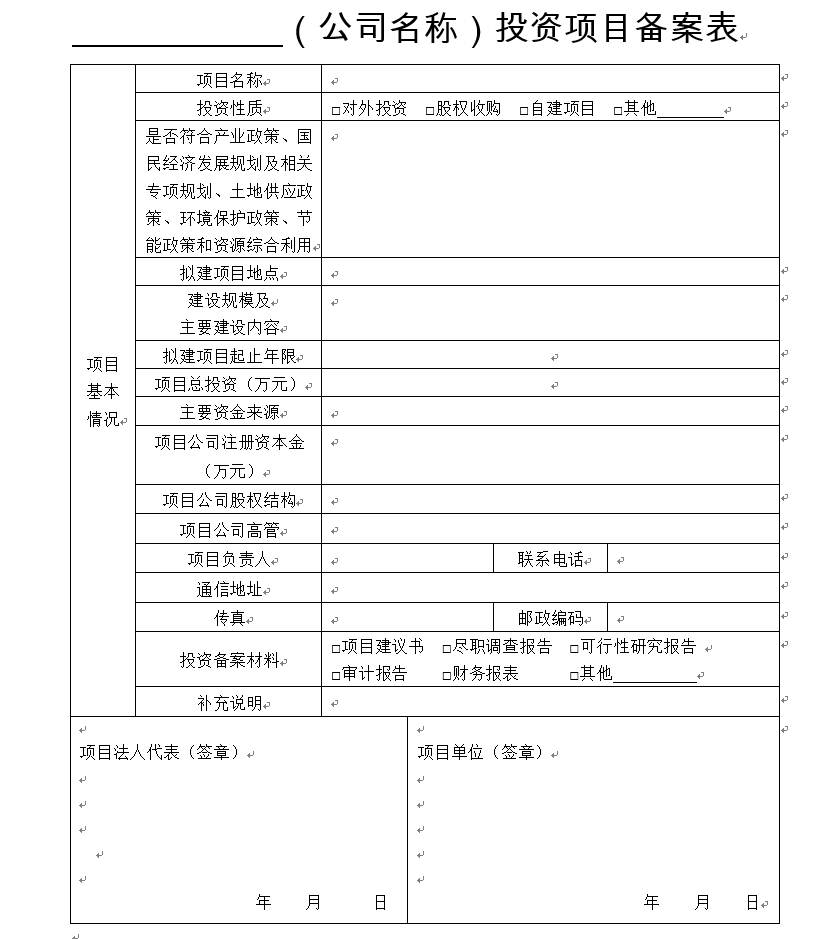 (二)备案:对实行备案管理的投资项目,按规定填写企业投资备案表(详见附件5),递交项目投资相关材料,报股东进行备案。