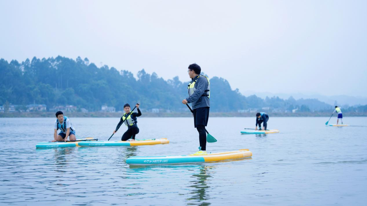 为构建产教融合新格局,推动产教融合走深走实,2023年11月14日,由青神县文化旅游投资有限公司主办的成艺大学SUP桨板班秋季课程在青神湖水上运动中心顺利开课。