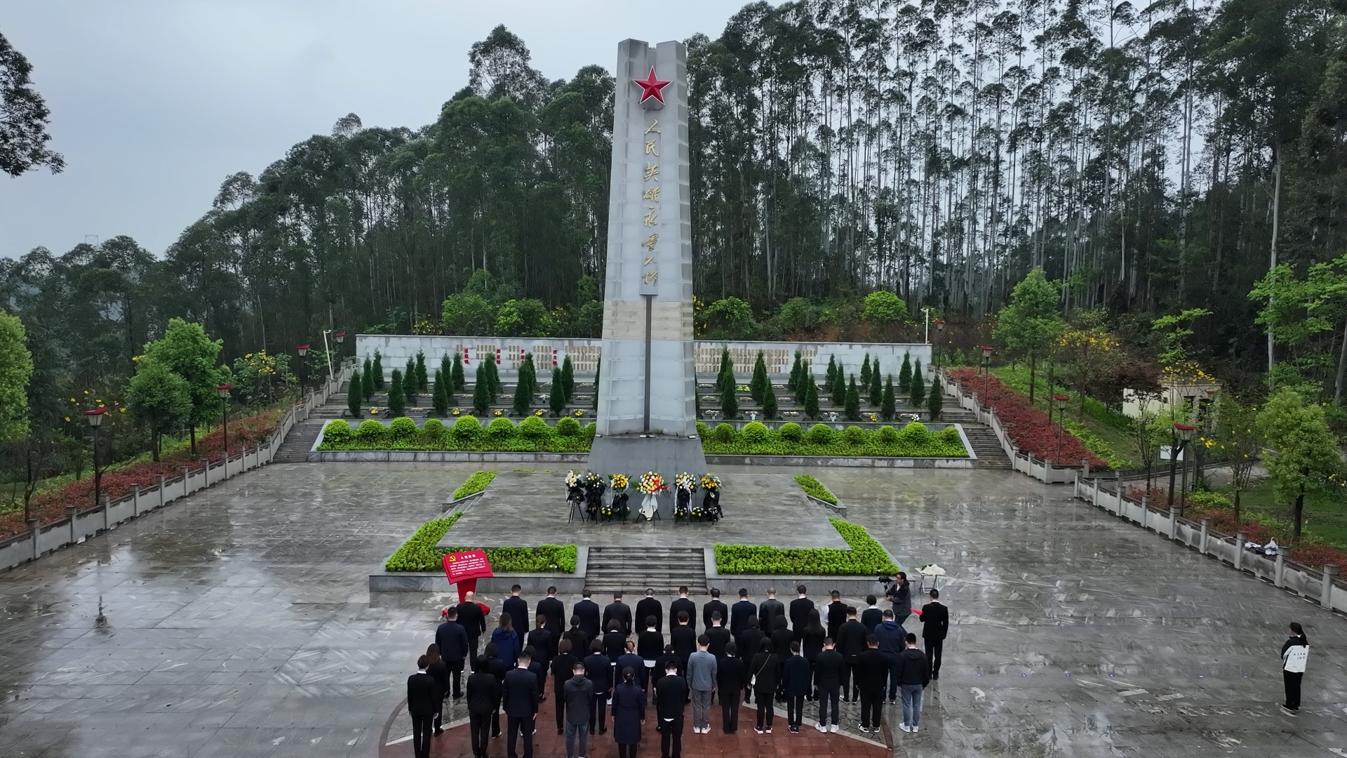 西山烽火连天赤,血沃花红遍地开。寄语今日赏花者,勿忘忠骨地下埋。在蒙蒙细雨中,全体党员身着正装,在庄严肃穆的革命烈士纪念碑前,列队肃立,向革命先烈致缅怀词、鞠躬默哀、敬献鲜花,缅怀先烈遗志,寄托哀思之情。随后,在鲜艳的党旗下,大家还重温了入党誓词。