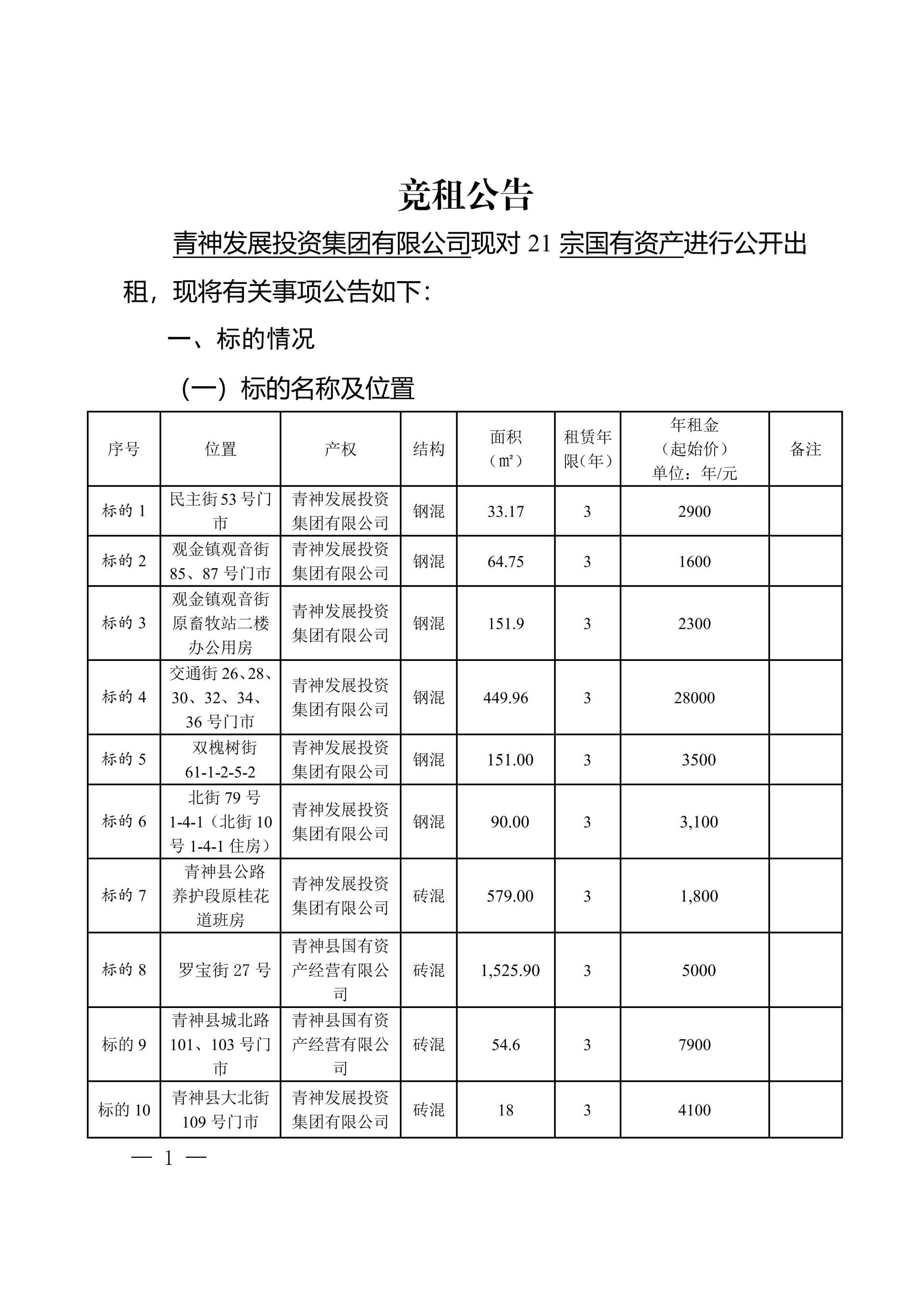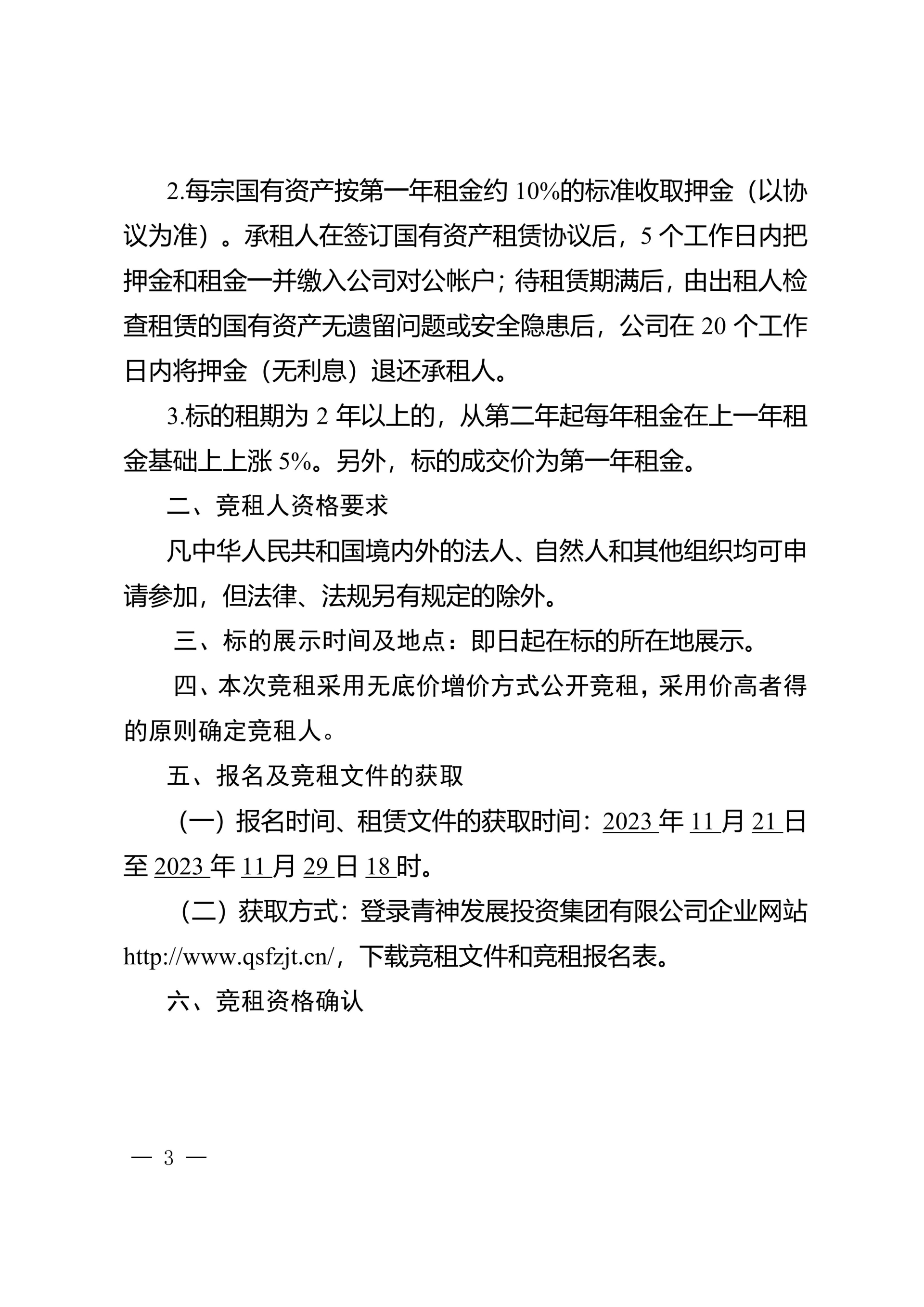 QFZ2023-03号 青发展集团公司21宗国有资产对外出租