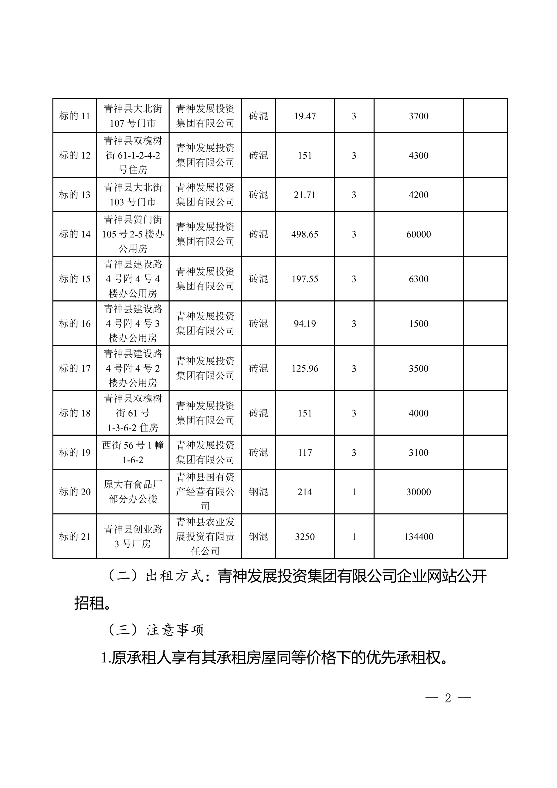 QFZ2023-02号 青发展集团公司28宗国有资产对外出租