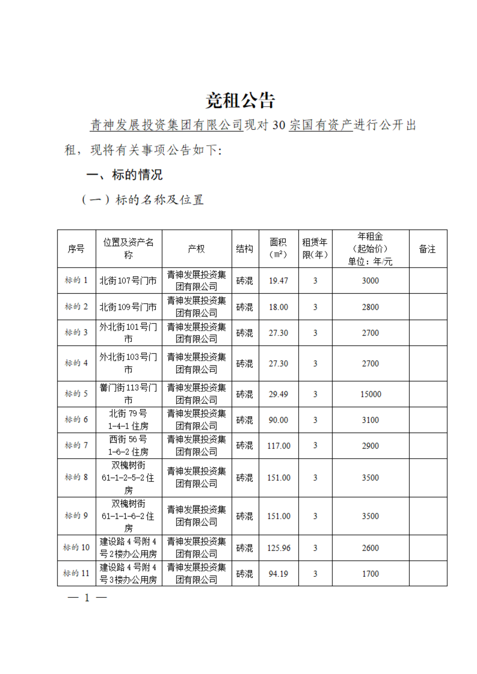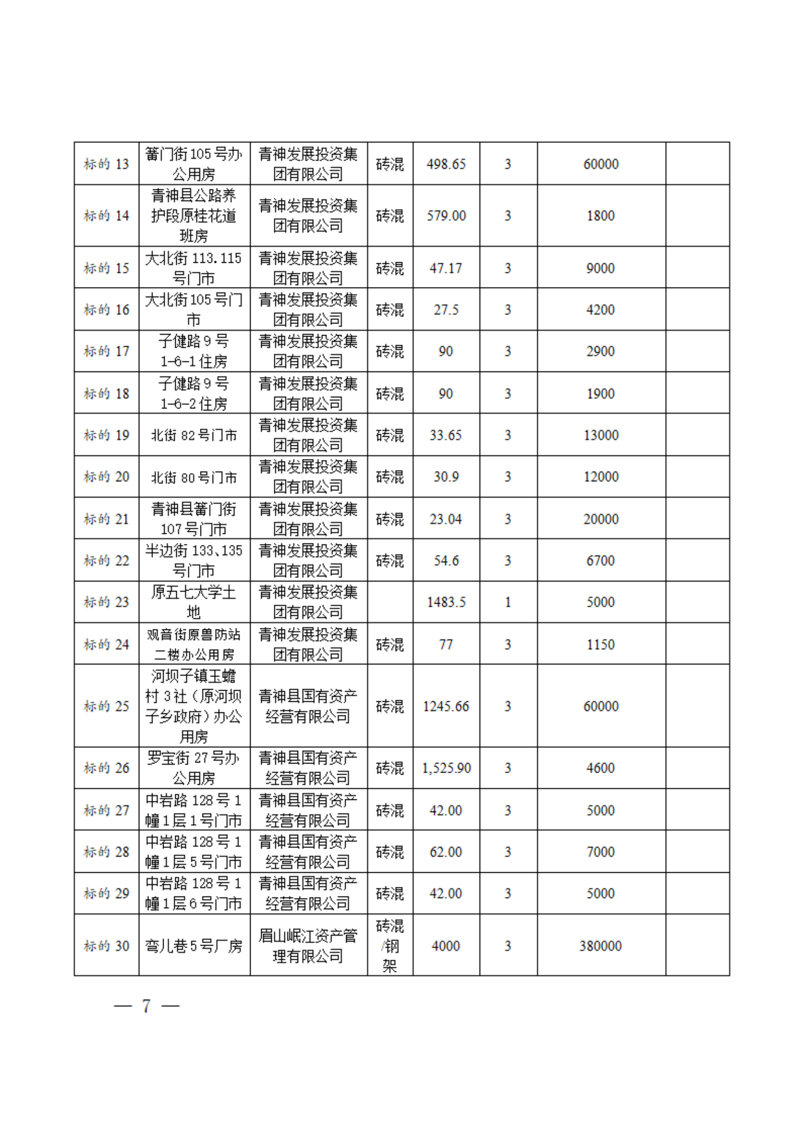 QFZ2024-07号青发展集团公司30宗国有资产对外出租