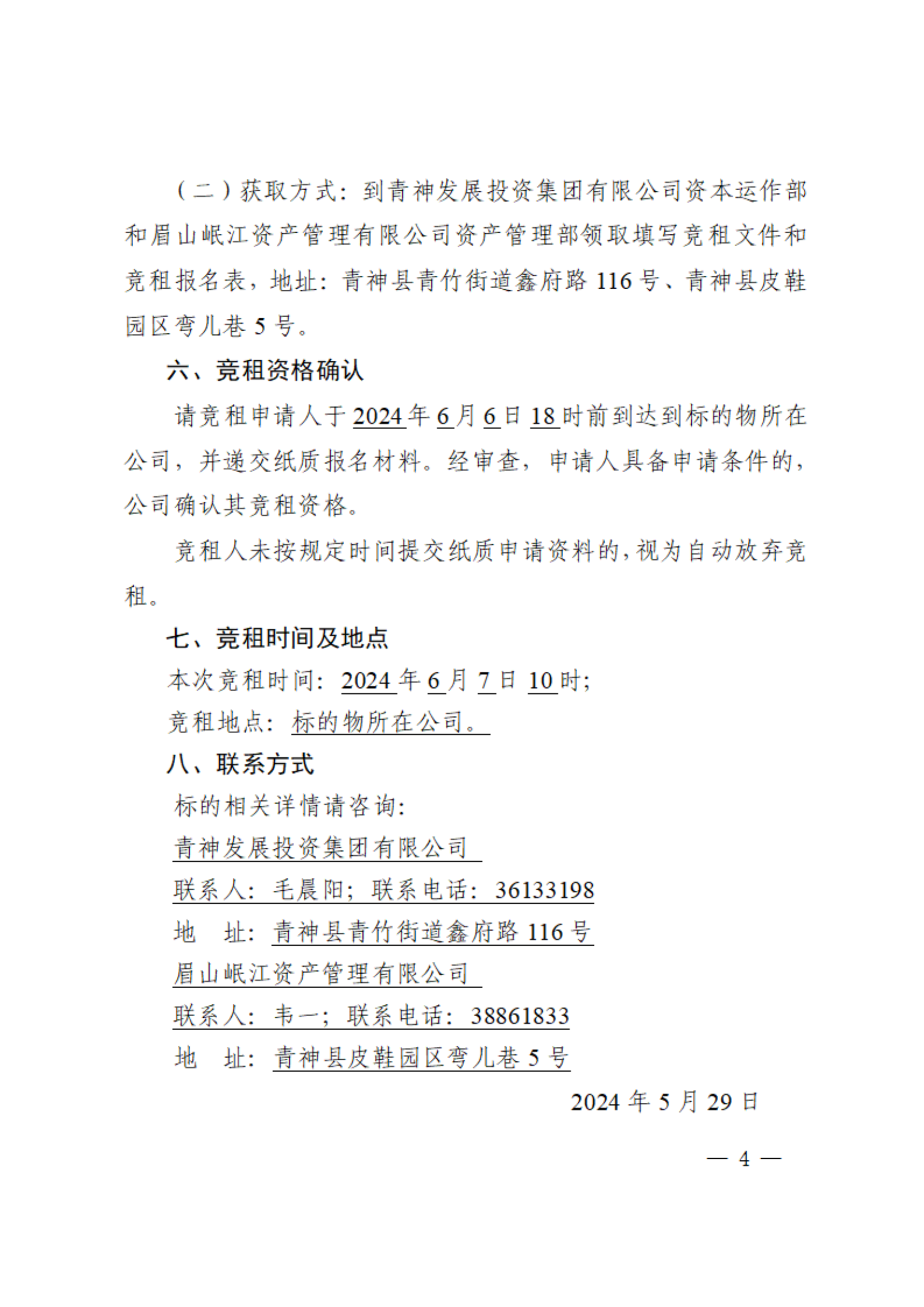 QFZ2024-06号 青发展集团公司2宗国有资产对外出租