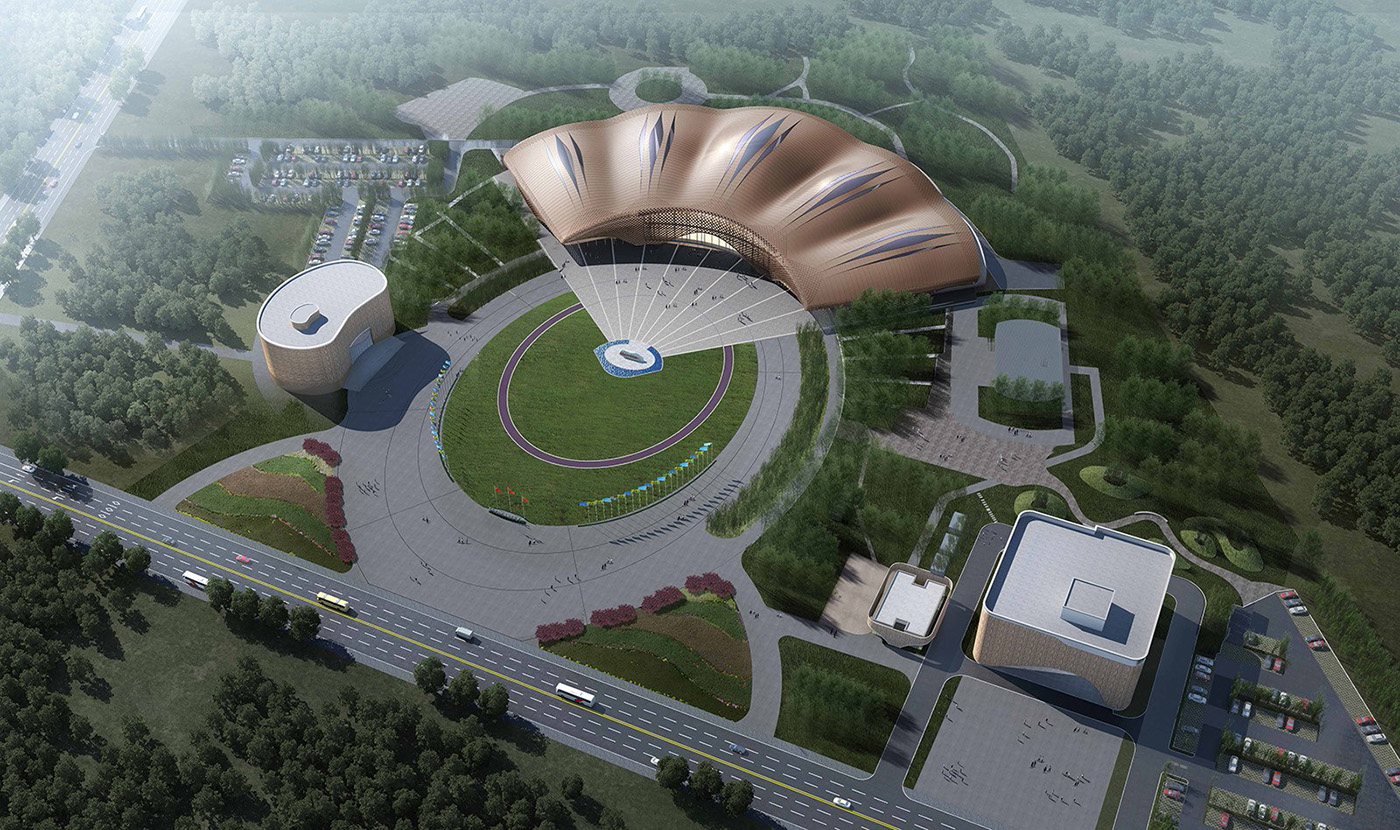 青神国际竹产业展览中心投资1.5亿元,占地面积15000平方米,整体造型以苏东坡《竹石扇面图》为设计灵感,将整个展馆以扇面形状呈现,寓意“以扇面书写竹文化”。建筑内外凸显“竹”元素,运用现代化的建筑设计手法,打造具有地域特色的、现代化的国际竹产业展览中心。与已建成的国际竹艺中心、熊猫馆、国际竹编艺术博览馆等,形成了集展览展销、竹艺博览、交流培训、设计研发等功能为一体的竹产业专业博览综合体。