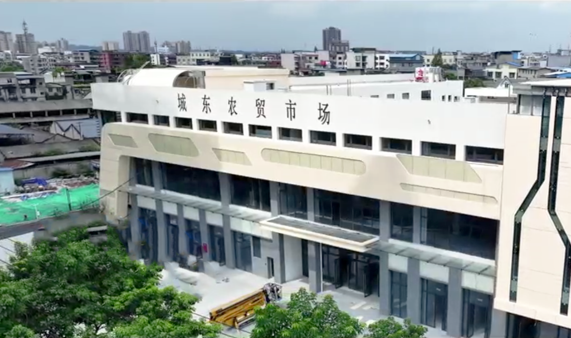 城东农贸市场坐落于青神县盐关路与中岩路交汇处,盐关路以北,利民街以南,东临滨江一号小区,于2025年4月全面建成,由青神县农业发展投资有限责任公司负责经营管理。市场占地面积约21.22亩,一层现有门市80间(其中,室外水产和生鲜门市26间,室内综合门市54间)、蔬菜水果摊位28个、鲜肉摊位40个,主营:蔬菜、水果、熟食、鲜肉、干鲜、水产、生鲜、粮油、鲜蛋等。市场配套有办公室、食品安全快检室、公厕、停车场等公共服务设施。