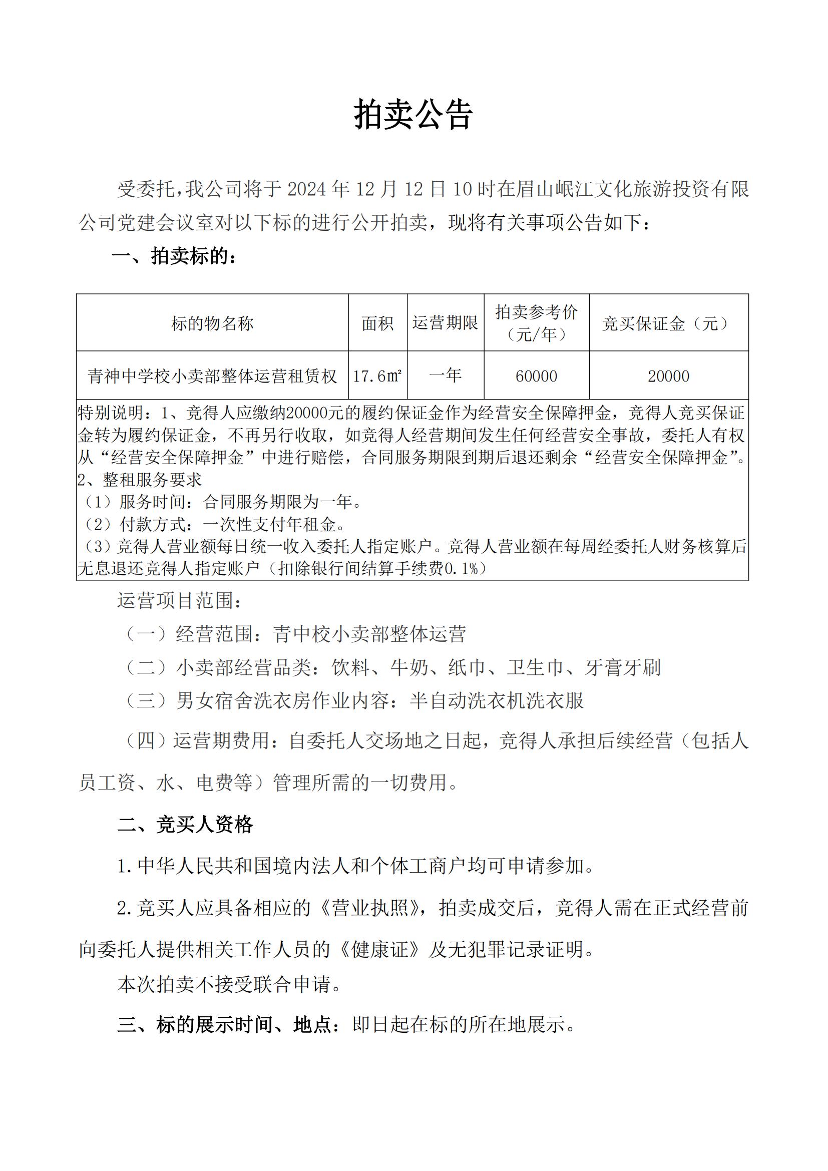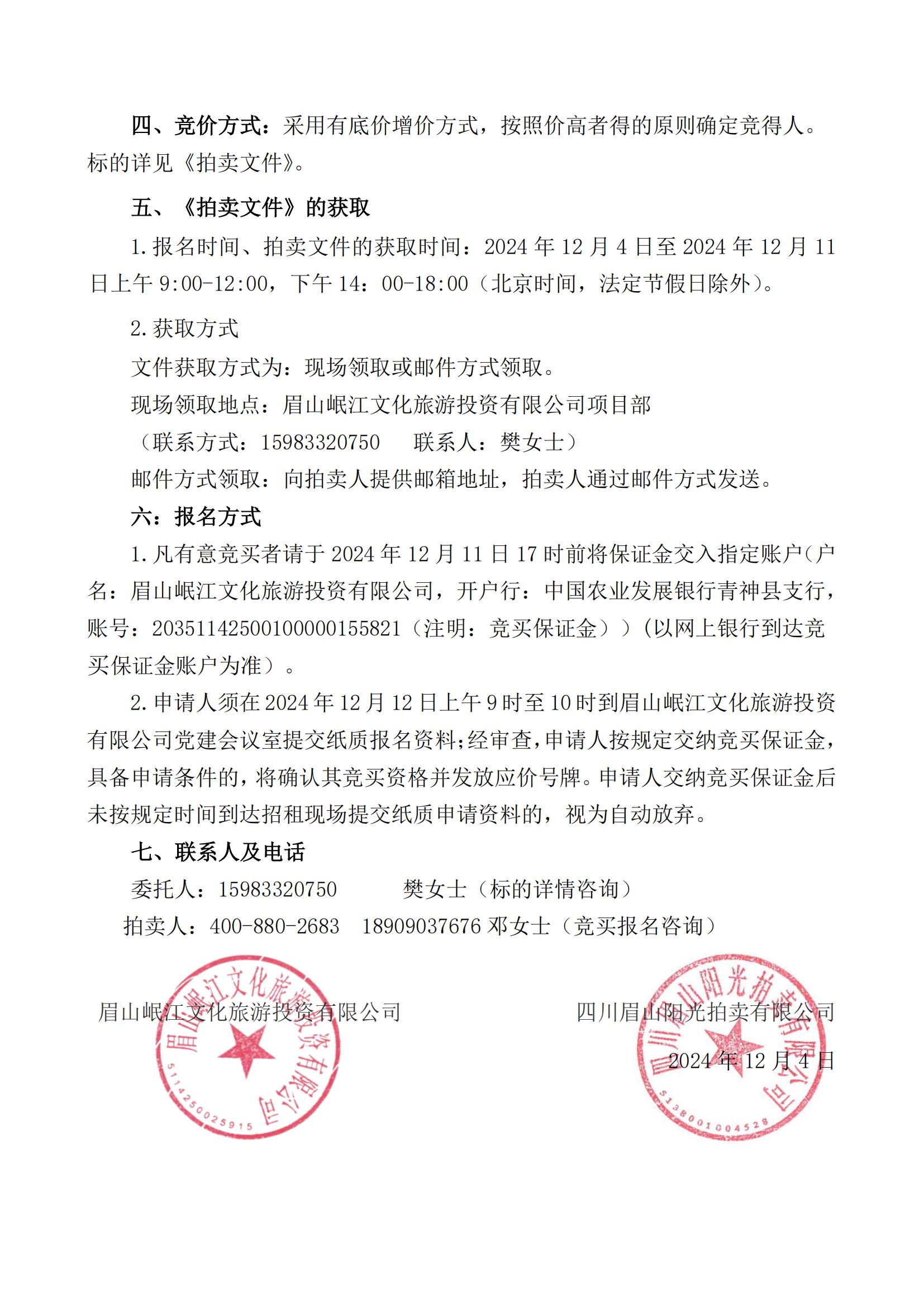 眉山岷江文化旅游投资有限公司关于公开招募合悦里营地联营合作方的公告