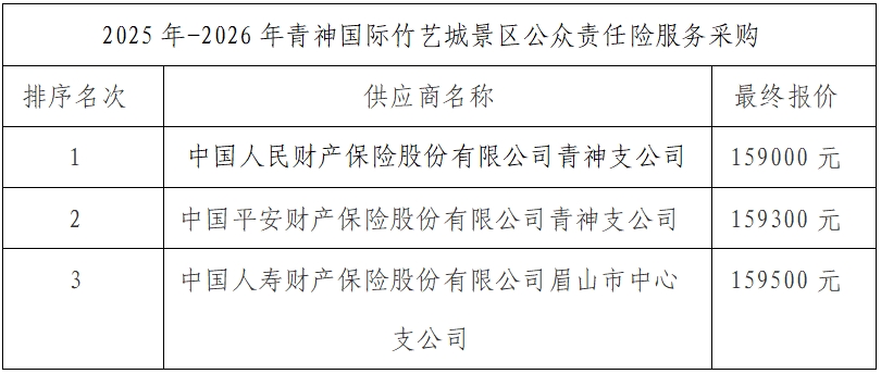 一、项目名称:2025年-2026年青神国际竹艺城景区公众责任险服务采购