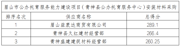 一、项目名称:眉山市公办托育服务能力建设项目(青神县公办托育服务中心)安装材料采购。