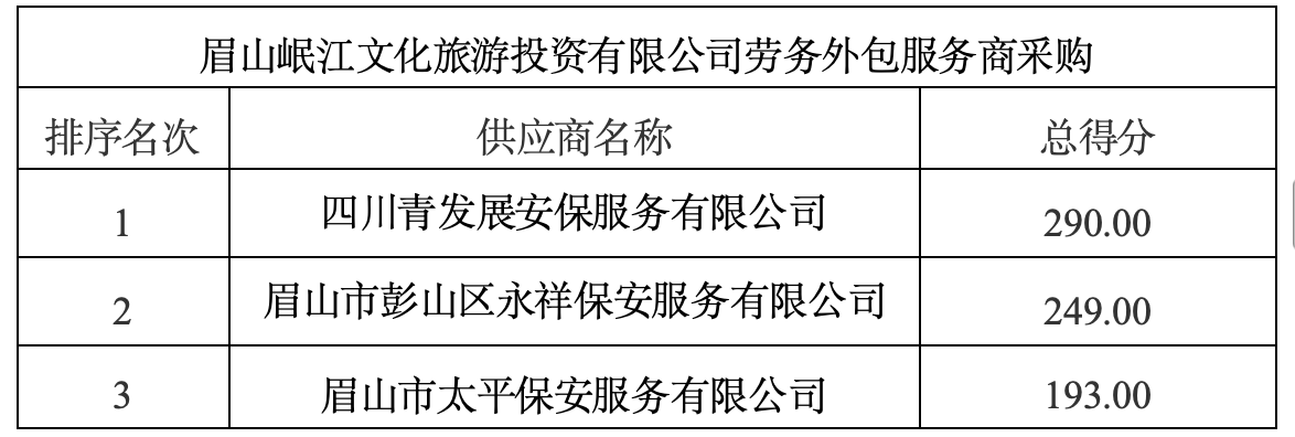 一、项目名称:眉山岷江文化旅游投资有限公司劳务外包服务商采购。
