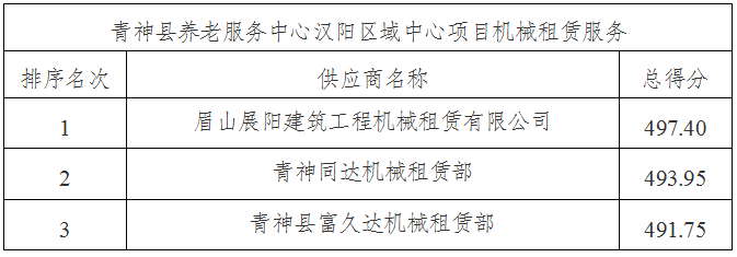 一、项目名称:青神县养老服务中心汉阳区域中心项目机械租赁服务(项目编号:QSYXZB20251103)。