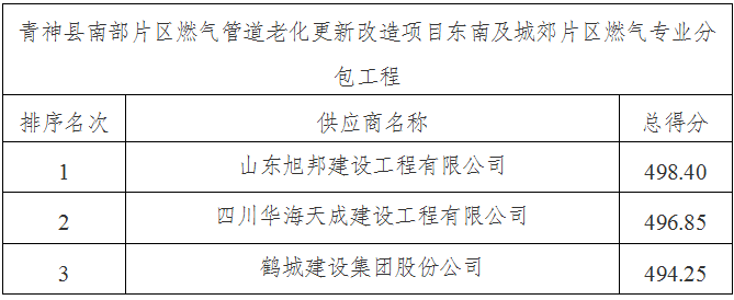 一、项目名称:青神县南部片区燃气管道老化更新改造项目东南及城郊片区燃气专业分包工程(项目编号:QSYXZB20251113)。