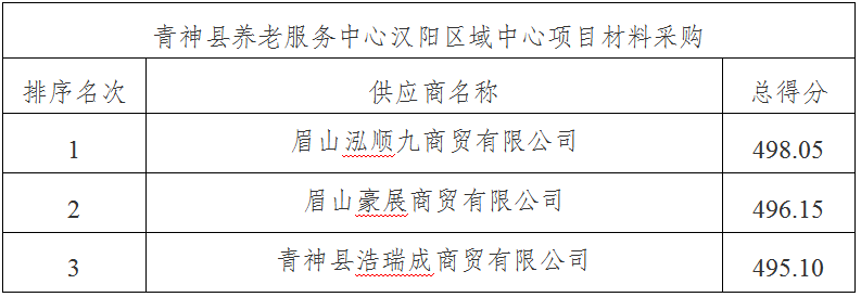 一、项目名称:青神县养老服务中心汉阳区域中心项目材料采购(项目编号:QSYXZB20251105)。