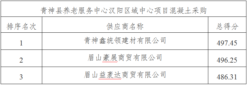 一、项目名称:青神县养老服务中心汉阳区域中心项目混凝土采购(项目编号:QSYXZB20251104)。