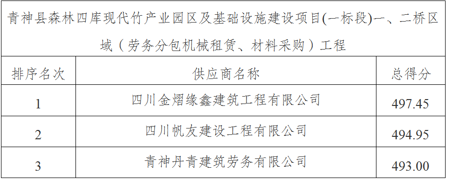 一、项目名称:青神县森林四库现代竹产业园区及基础设施建设项目(一标段)一、二桥区域(劳务分包机械租赁、材料采购)工程(项目编号:YXJS20251204)。