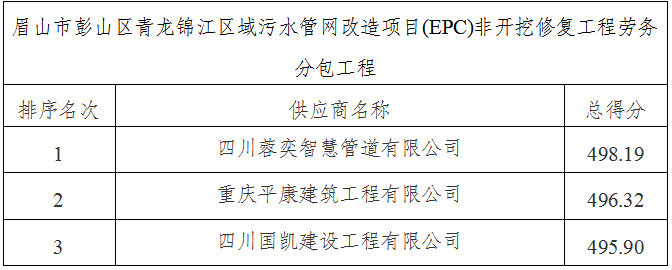 一、项目名称:眉山市彭山区青龙锦江区域污水管网改造项目(EPC)非开挖修复工程劳务分包工程(项目编号:QSYXZB20260303)。